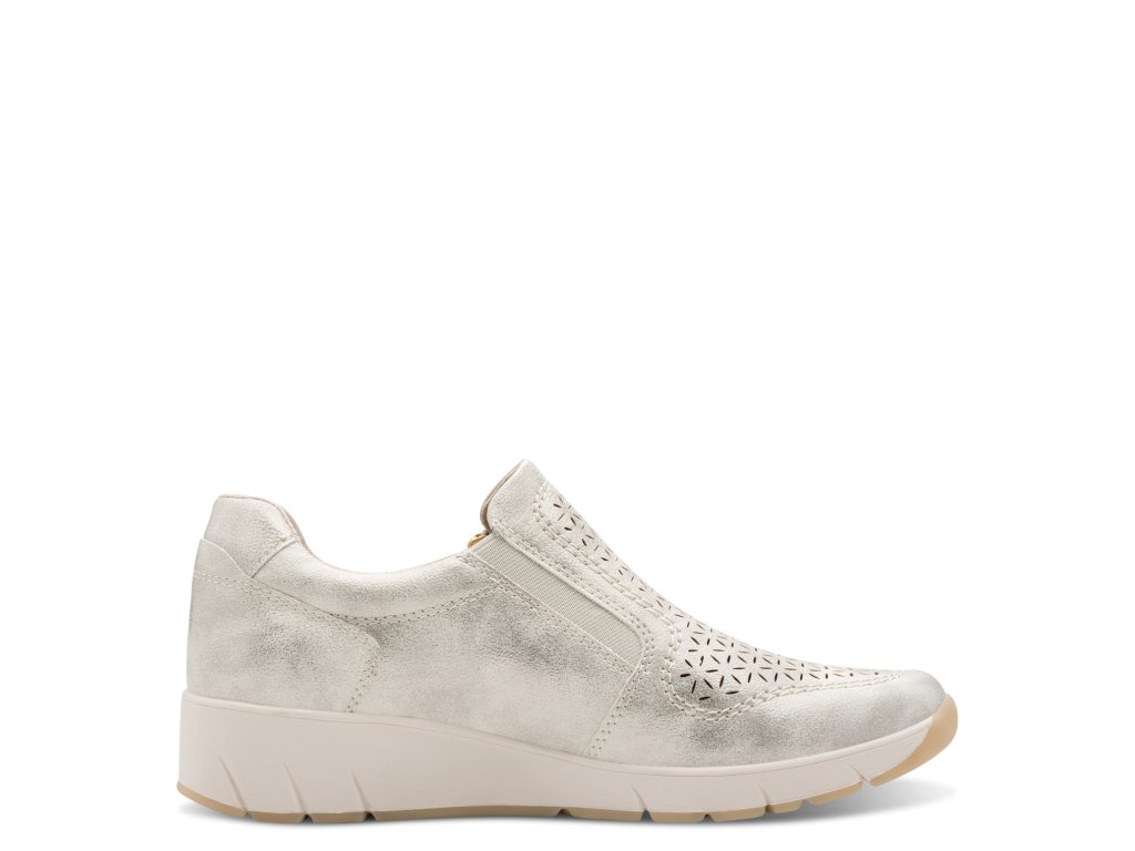 Hledáte pohodlné a přitom elegantní boty, které vás bez problémů provedou celým dnem? Tyto dámské perforované polobotky značky Jana v jemné béžovo-zlaté kombinaci jsou skvělou volbou pro ženy, které chtějí styl, komfort a dostatek prostoru pro chodidla. Díky prodyšnému provedení a měkké paměťové stélce se hodí na jaro a léto, ať už vyrážíte do práce, do města nebo na pohodovou procházku.