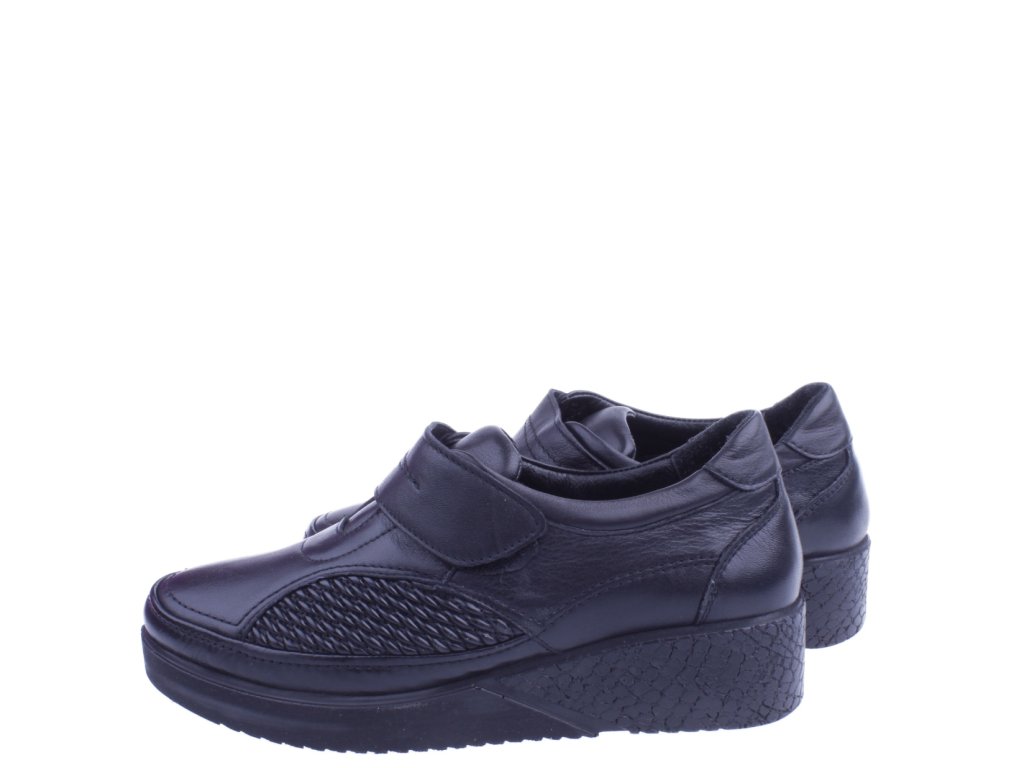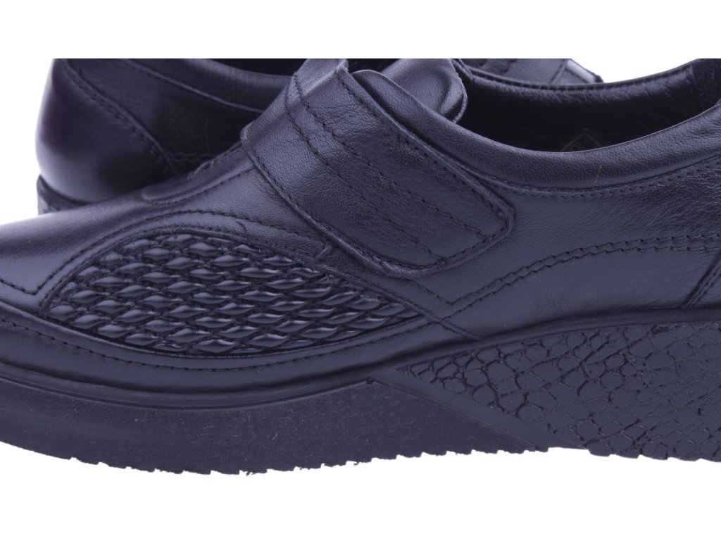Elegantní a zároveň maximálně pohodlné – takové jsou dámské černé polobotky z měkké kůže se zapínáním na suchý zip. Díky pružným koženým vsadkám po obou stranách se boty dokonale přizpůsobí tvaru chodidla a uleví i při potížích, jako jsou haluxy či kladívkové prsty. Skvělá volba pro ženy, které chtějí lehkou a praktickou obuv na každodenní nošení během jara a podzimu.
