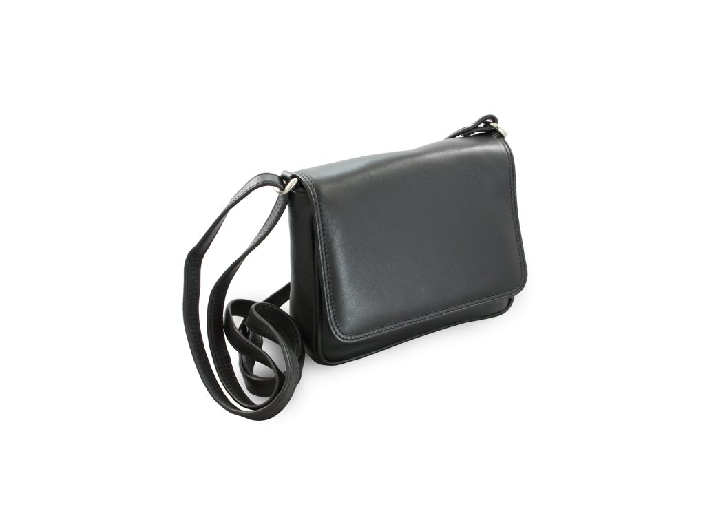 Černá kožená klopnová kabelka 213-3011-60