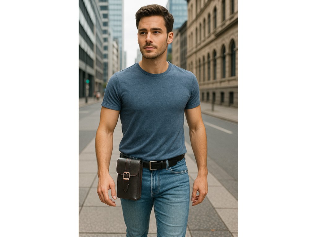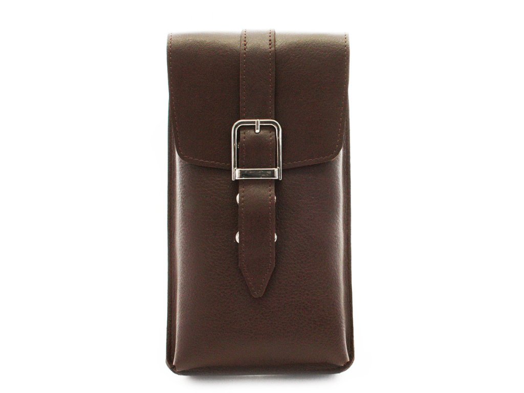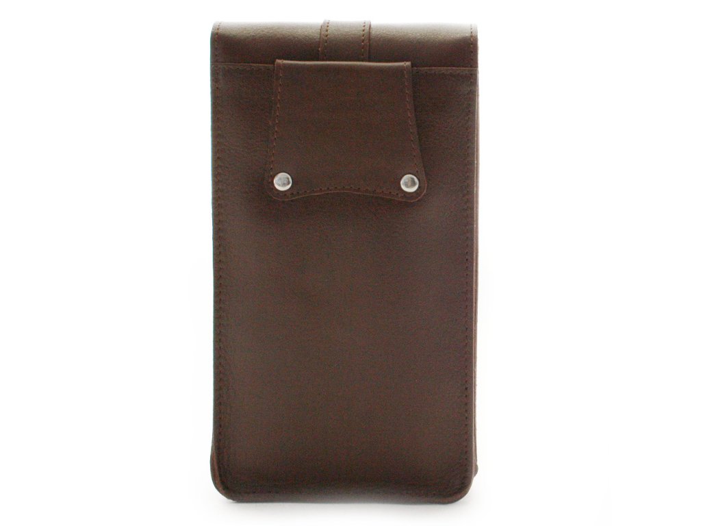 Pánské kožené pouzdro na mobil obsahuje 2 velké kapsy chráněné klopou se zámečkem. Na zadní vnější straně se nachází poutko pro možnost umístění pouzdra na opasek.