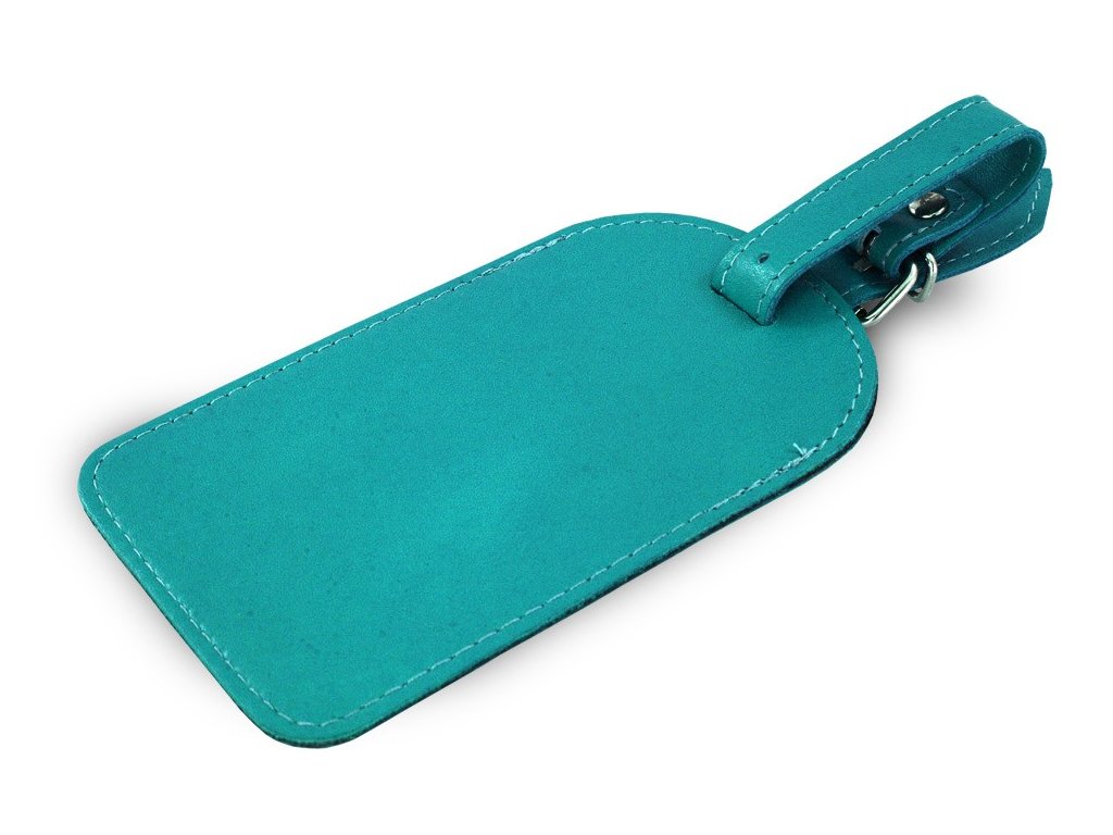 Tyrkysově modrá kožená visačka na zavazadlo 619-5405-53