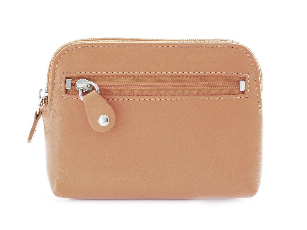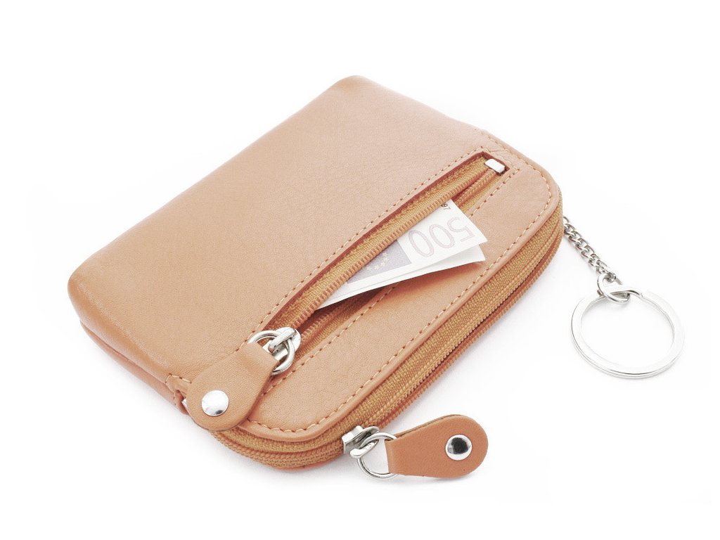 Větší béžová kožená dvouzipová klíčenka 619-8104-82