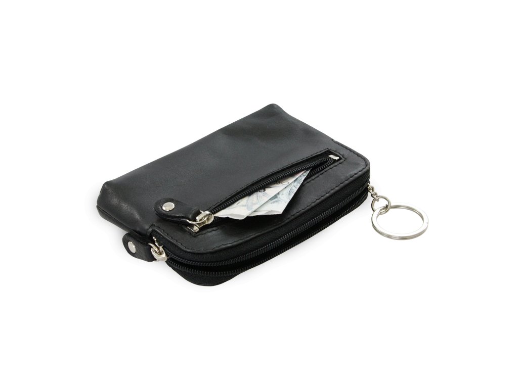 Větší černá kožená dvouzipová klíčenka 619-8104-60